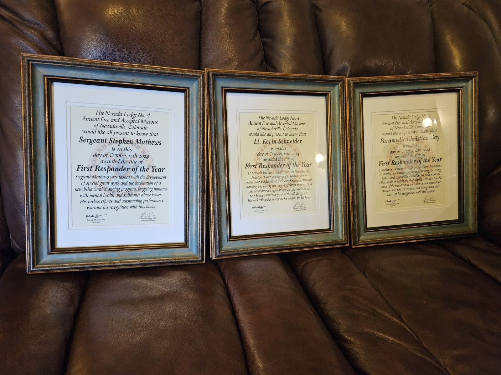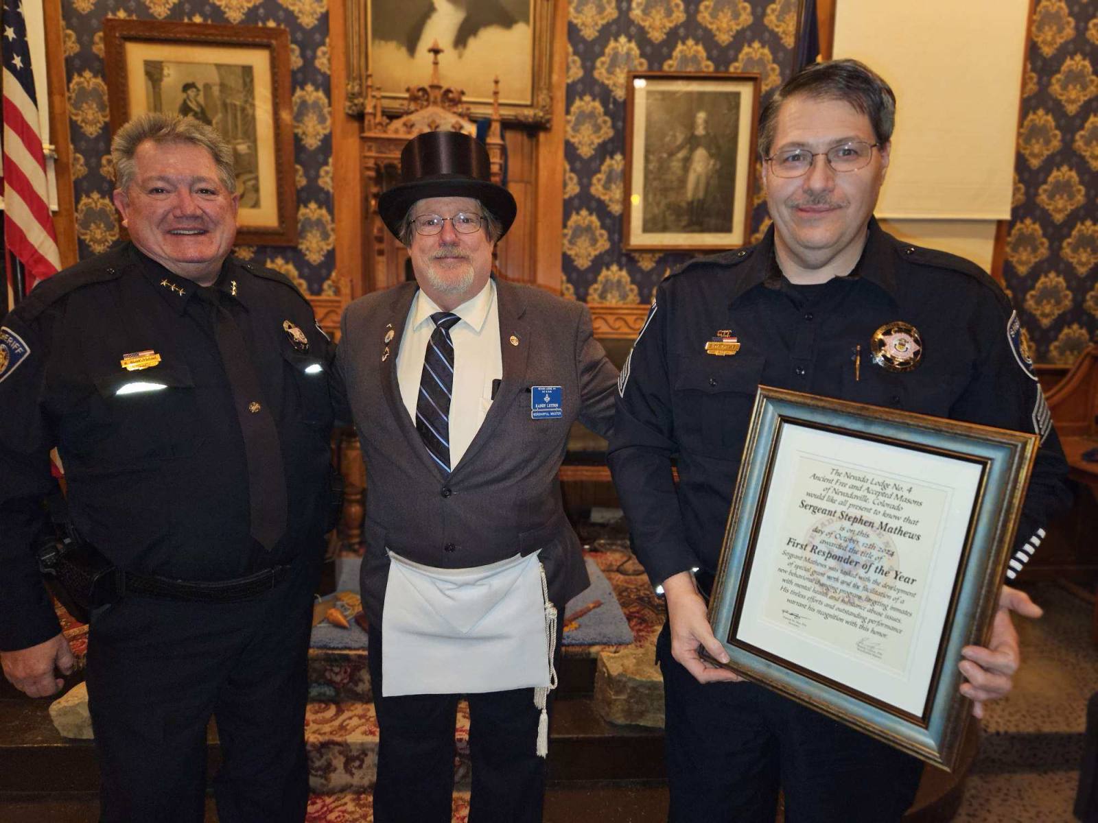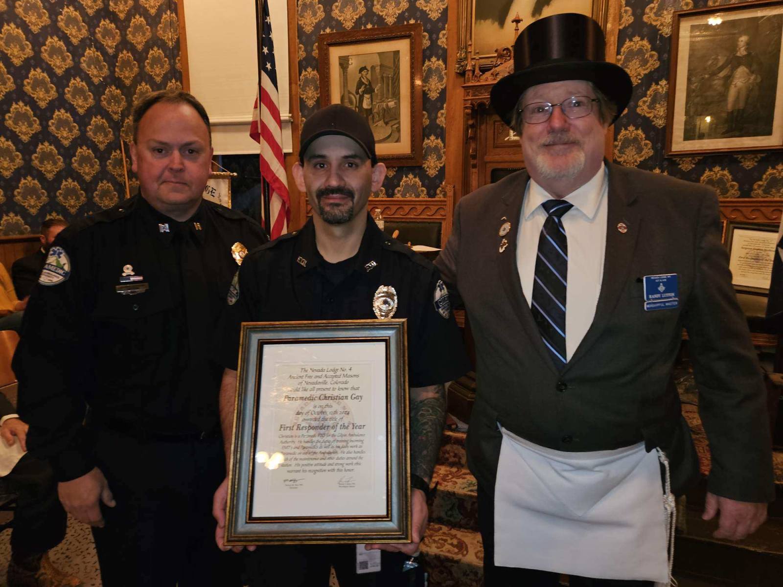 We had a wonderful evening hosting Miss Colorado Job’s Daughter, Julia H., and Band Camp Scholarship recipient, Sam H. We were also honored to recognize the First Responders of the Year, chosen by their respective leaders in Gilpin County: Paramedic Christian Gay from Gilpin Ambulance Authority, Lt. Kevin Schneider from Timberline Fire Protection District, and Sgt. Stephen Mathews from Gilpin County Sheriff’s Office.